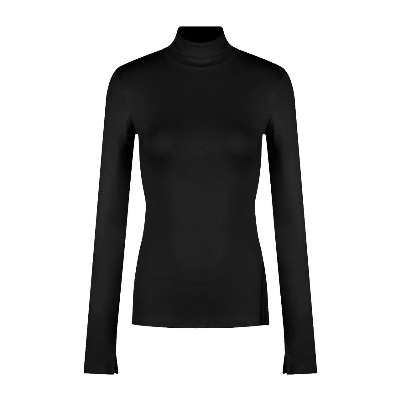 長版高領黑色上衣完美修飾比例,